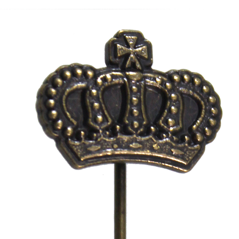 Kleine Anstecknadel mit dem Schriftzug Royal in der Farbe altmessing.Größe: 16,4 mm x 12 mm