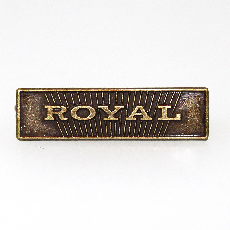 Kleine Ansteckplakette/nadel mit dem Aufdruck "Royal". Aus Zinkdruckguss in der Oberfläche Altmessing.