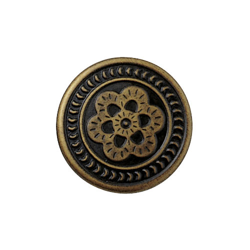 17 mm große Jeans-Knöpfe in altmessing. Dekor Blumendesign. Incl. Werkzeug und Anleitung. Kann mit der Vario-Zange verarbeitet werden.
