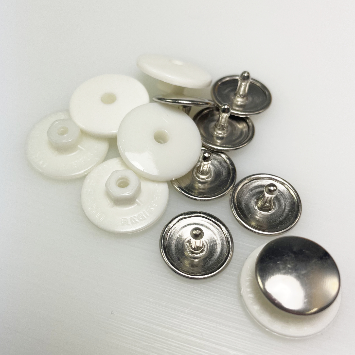 Patent-Hosenknöpfe die ohne Werkzeuge montiert werden können.