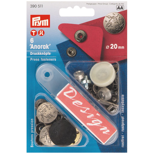 Druckknöpfe 'Anorak' Design - "Excursion" mit mittlerere Schlusskraft.