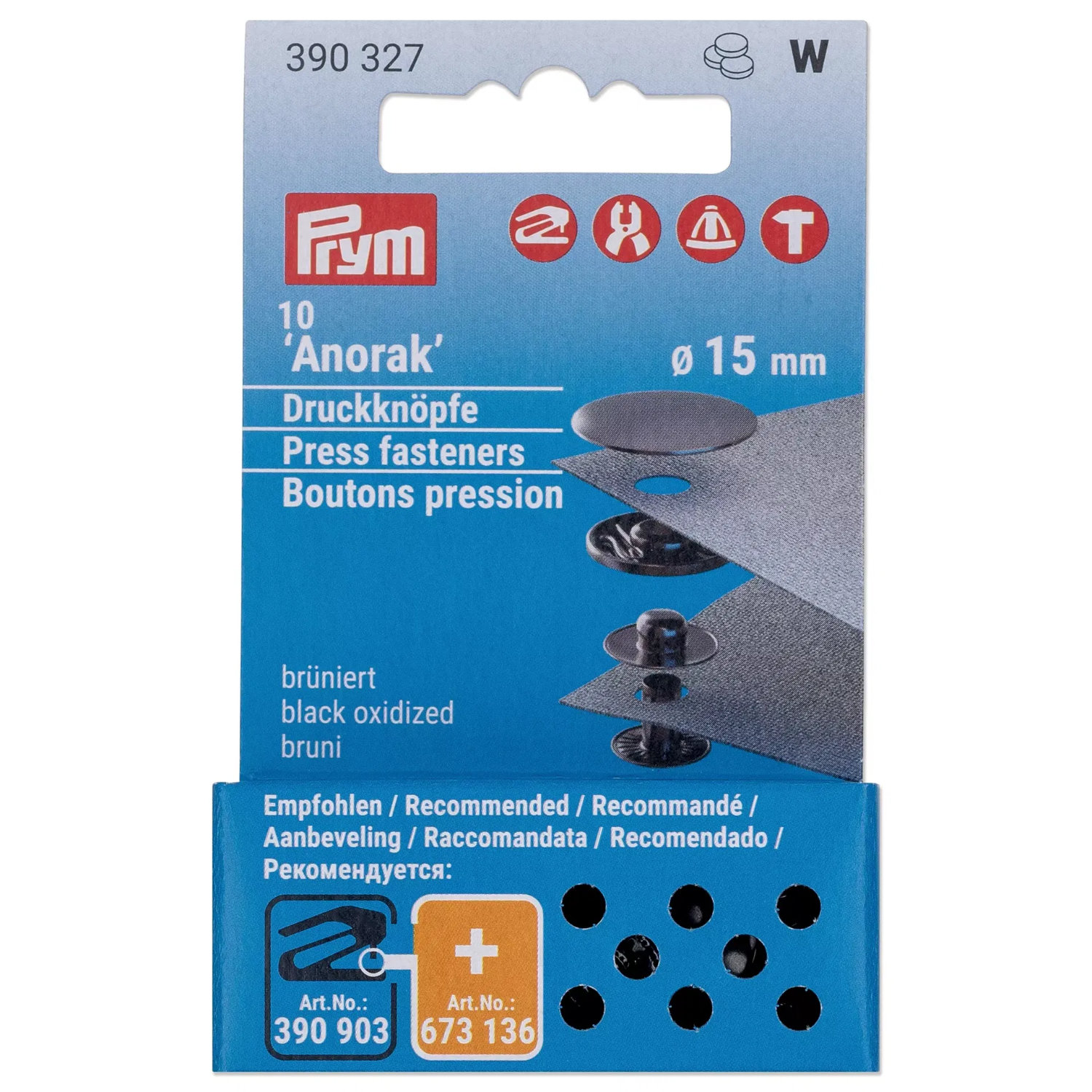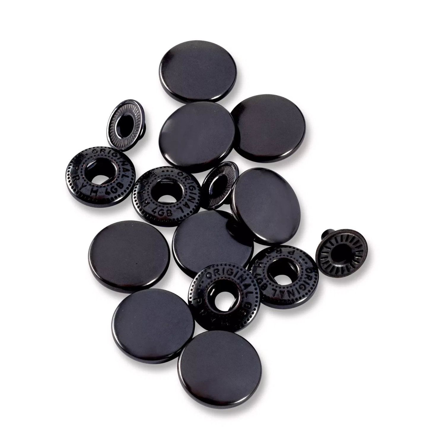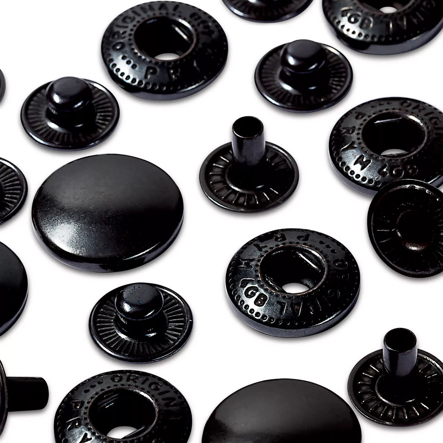 Nachfüllpackung ohne Werkzeug für die Anorak-Drücker in 15 mm Durchmesser. Bestehend aus jeweils 10 Kappen, Federteilen, Kugelteilen und Nieten.
