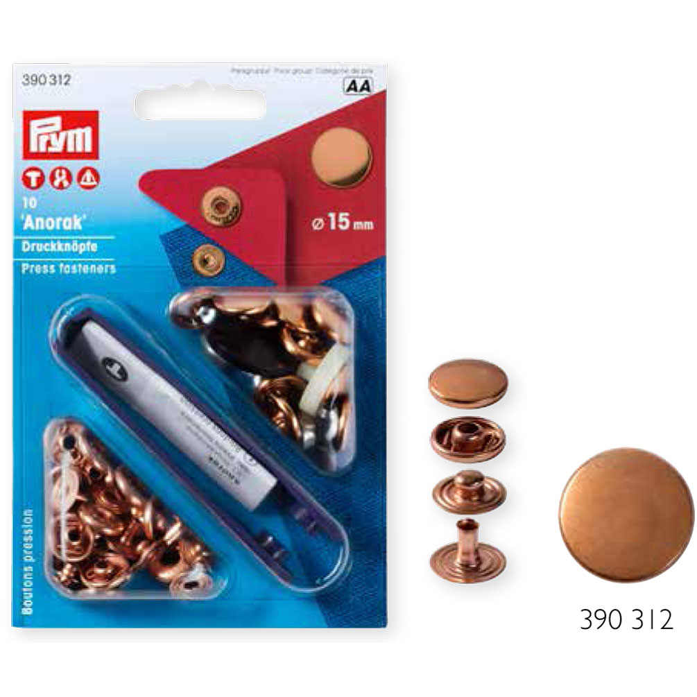 Neu in Sortiment der Anorak-Druckknopf in 15 mm der Trendfarbe kupfer.Alle 4 Bestandteile sind in verkupfert ausgeführt.