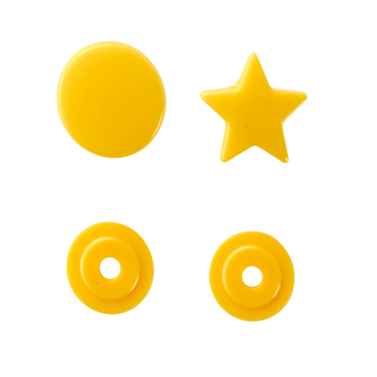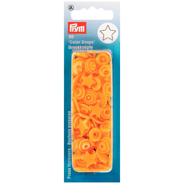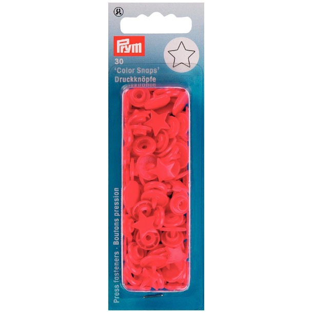 Farbenfrohe Kunststoff-Druckknöpfe in Form eines Sterns. Lassen sich problemlos mit der Vario-Zange verarbeiten.