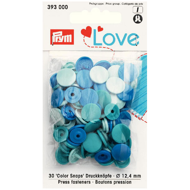 Die Packungen enthalten insgesamt 30 Druckknöpfe in verschiedenen Farbmischungen. Farblich sind die Artikel aufeinander abgestimmt.