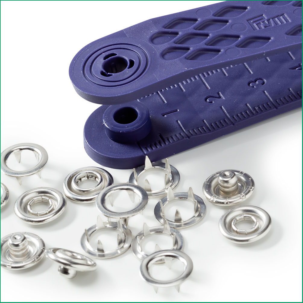 Die Knöpfe können mit dem Hammer oder der Zange verarbeitet werden. Wir empfehlen den Einsatz der Vario-Zange.