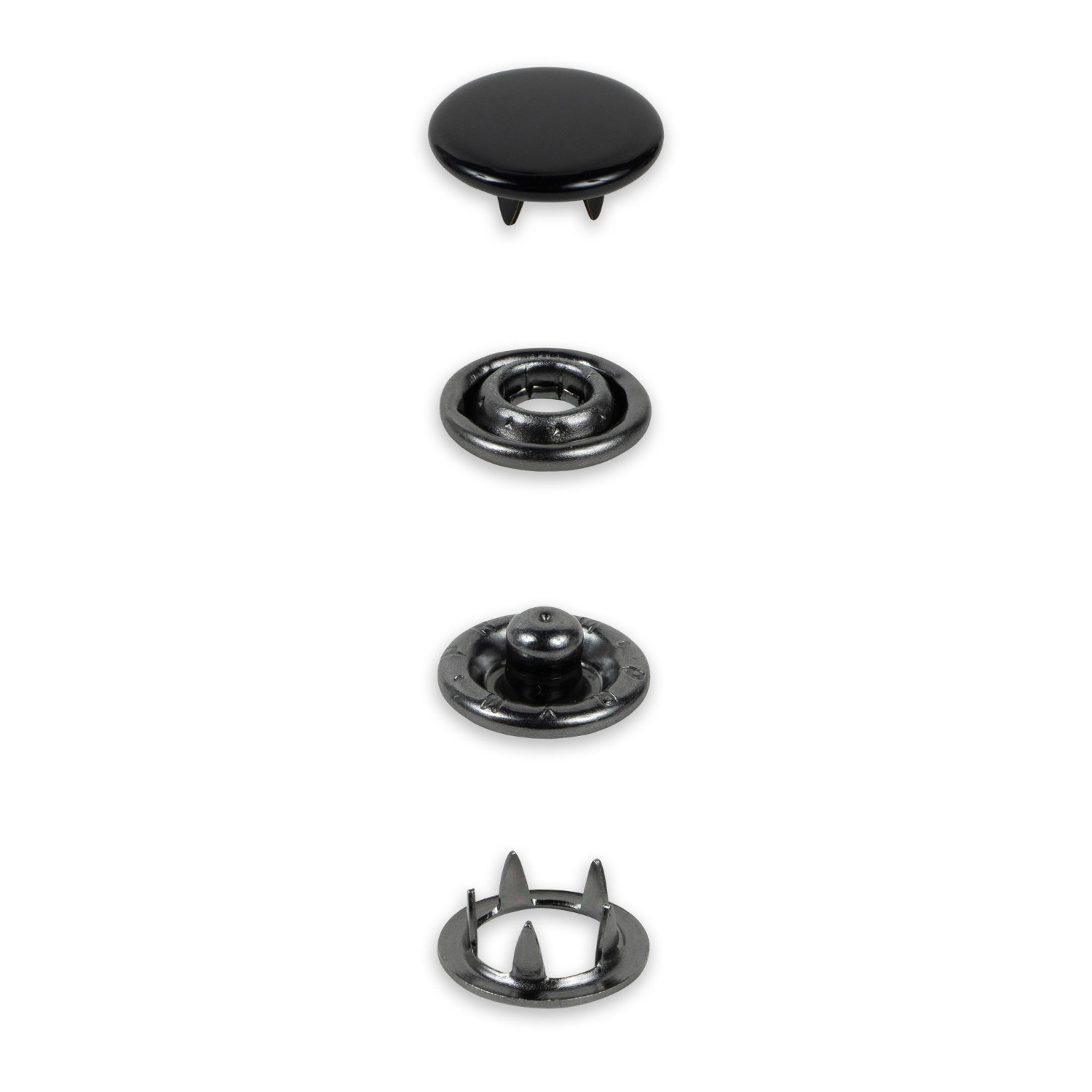 Endlich Jersey-Druckknöpfe mit lackierten Kappen. DIe Unterteile sind farblich abgestimmt. Benötigt das Werkzeug 673142 für das VARIO Creative Tool.