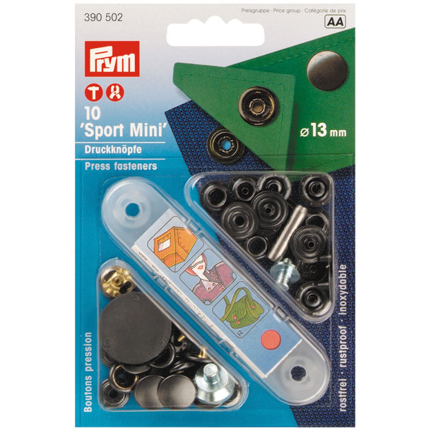 10 Druckknöpfe 'Sport-Mini' 13 mm brüniert