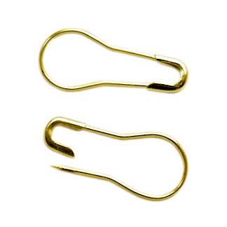 Goldfarbige Sicherheitsnadeln in Birnenform aus Stahl. Ideal zum Befestigen von Preisschildern, Anhängern oder auch für Bastelarbeiten.