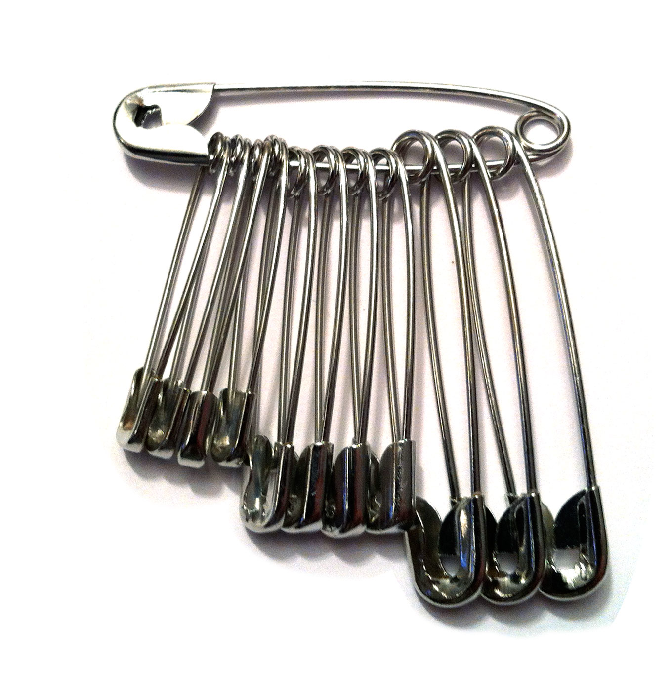 1200 Sicherheitsnadeln im Karton gebündelt mit 12 Sicherheitsnadeln in der Größen 45 mm, 38mm und 32mm.