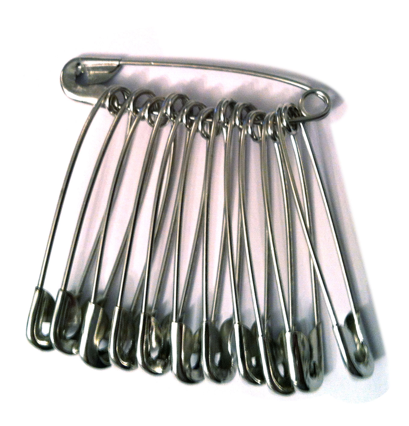 Karton mit 100 Bündeln mit 12 Sicherheitsnadeln in der Größe 60mm.Insgesamt also 1.200 silberfarbige Sicherheitsnadeln.
