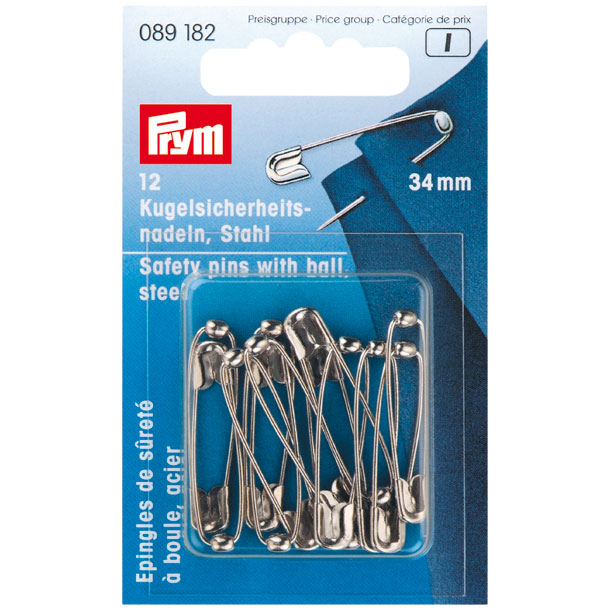10 Sicherheitsnadeln mit Kugel als Blisterverpackung.