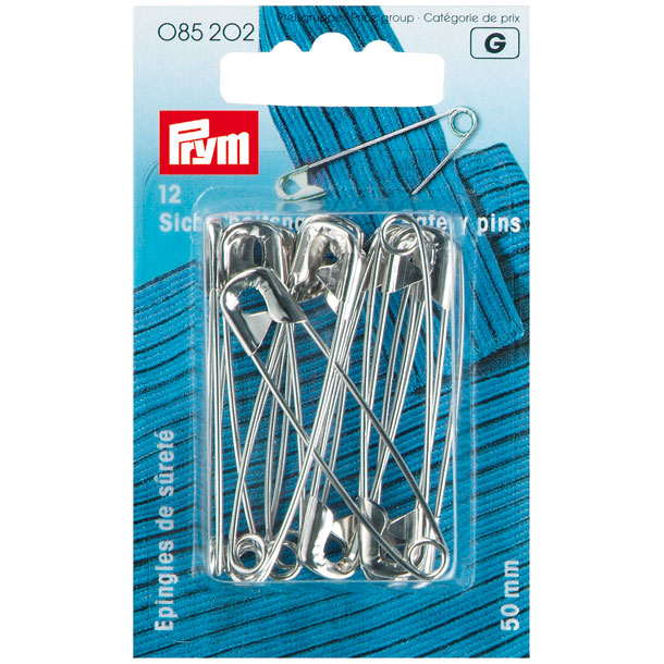 Silberfarbige Sicherheitsnadeln mit Spirale. Aus rostgeschütztem StahlLänge 50 mm