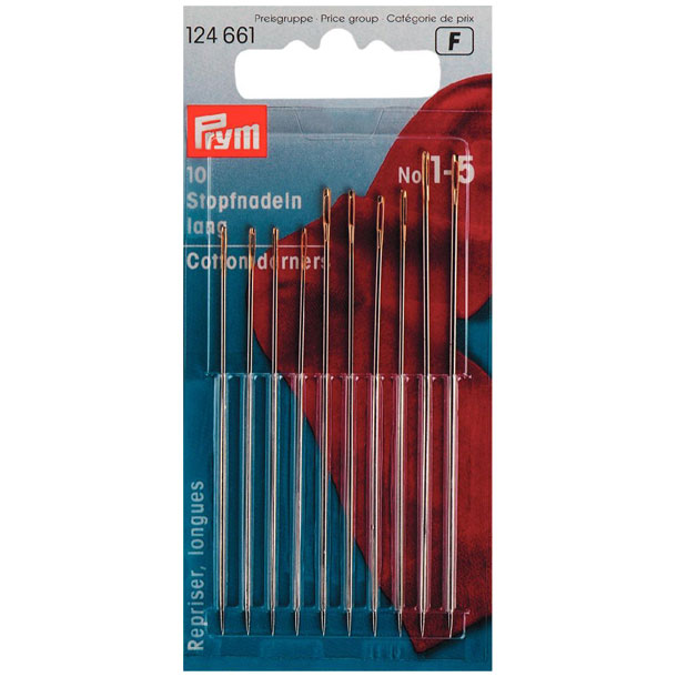 Silberfarbige Stopfnadeln in langer Ausführung mit Goldöhr.Aus Stahl