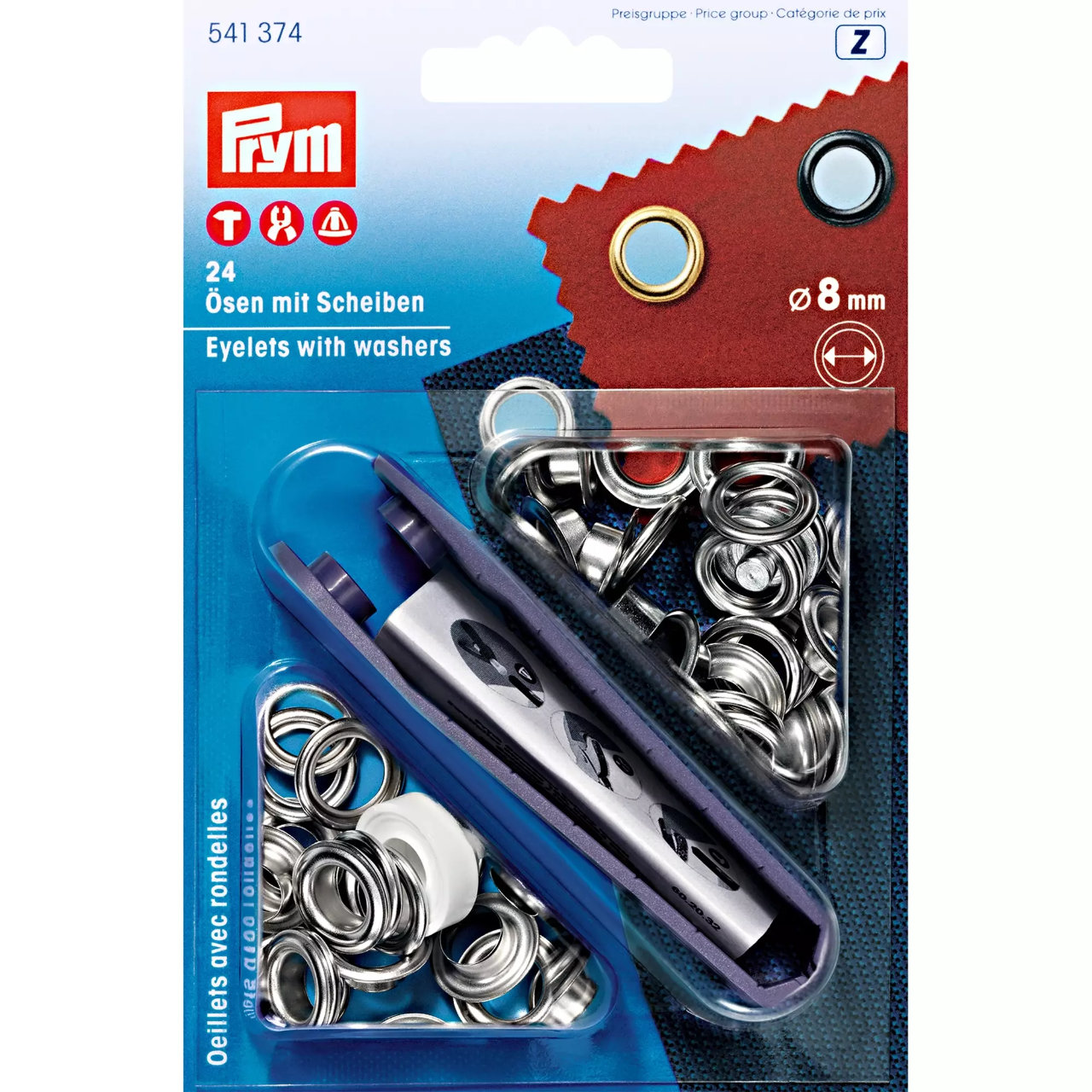 Startseite » Ösen » 24 Ösen und Scheiben MS silberfarbig 8,0 mm