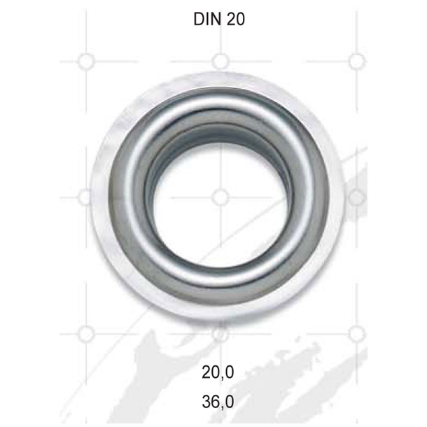 Mit Krallen als Sicherung gegen das Verdrehen der Ösen.