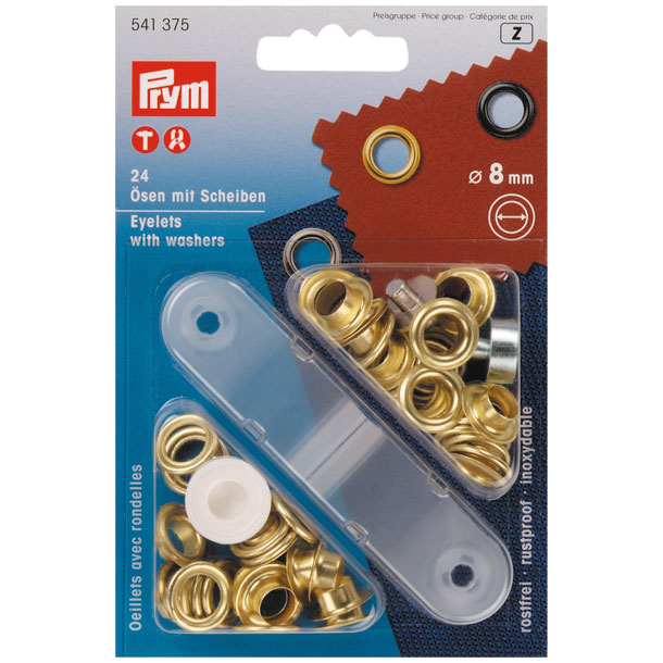 24 Ösen und Scheiben MS goldfarbig 8,0 mm