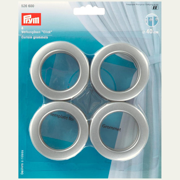 Vorhangösen aus Kunststoff für Stangen mit einem Ø von bis zu 3,5 cm Mit praktischem Click-Verschluss, inkl. Schablone, für eine schnelle Anbringung ohne Spezialwerkzeug. Farbe: silber matt
