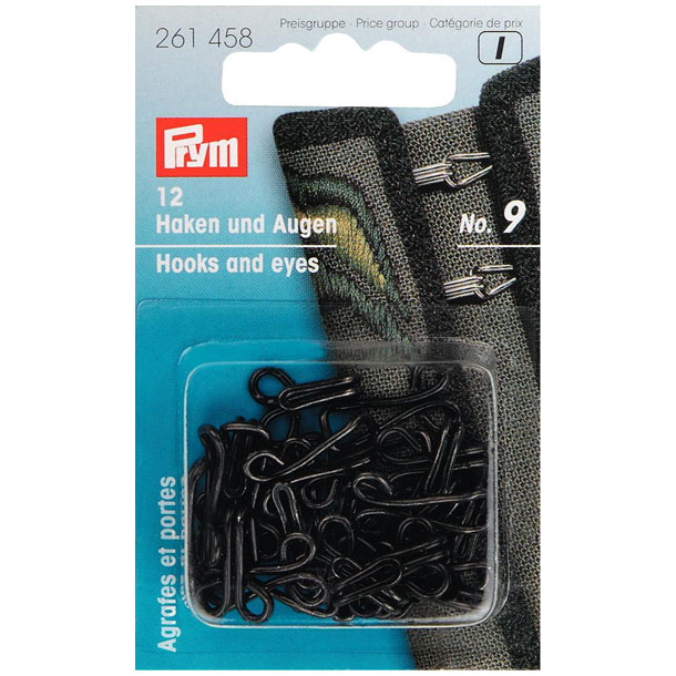 Der bewährte Joppen-Verschluss Größe 9 in schwarz. Als Packung mit 12 Stück. Aus Eisen.