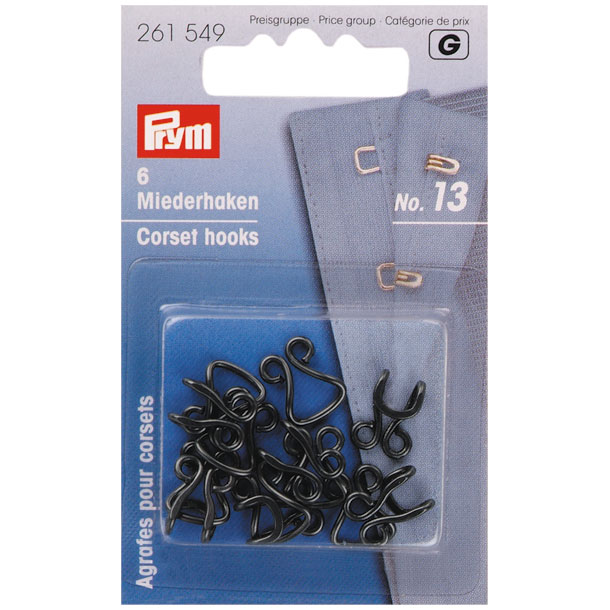 Korset- oder Miederhaken in der Größe 13. In Messing brüniert (schwarz)
