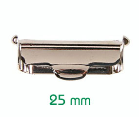 Klappschnallen für 25 mm breite Hosenträger aus vernickeltem Stahl. Preise gelten pro Stück.