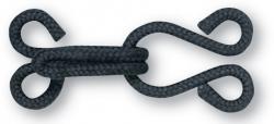Pelzhaken und -augen mit Polyesterfäden umsponnen.