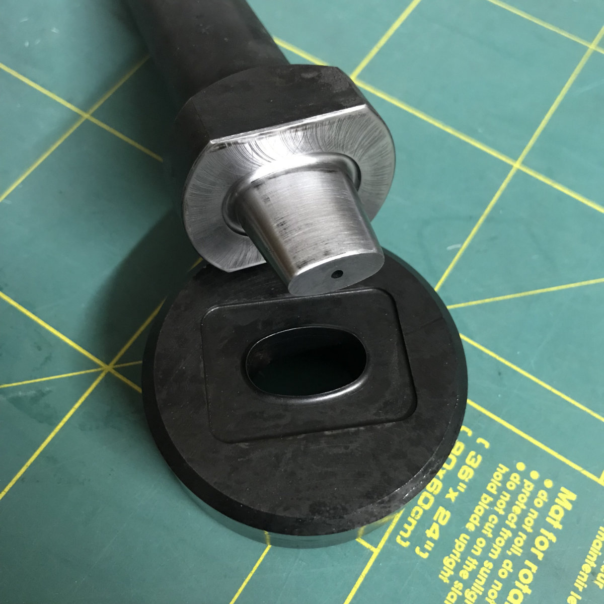 Werkzeug zum Montieren der ovalen Ösen Typ 360 für Drehverschlüsse.