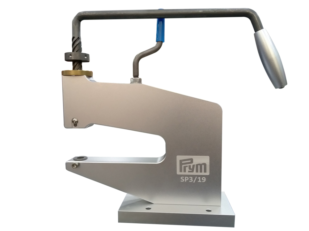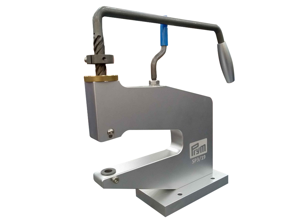 Die Handspindelpresse SP3/19 eignet sich als universell einsetzbares Nietgerät zur Verarbeitung von Einnietdruckknöpfen, vernietbaren Hosenhaken und -Augen, Jeansknöpfen und - Nieten sowie Ösen und Scheiben bei Verwendung entsprechender Nietstempel. Außerdem eignet sich diese Presse zum lochen und stanzen von Textil-, Leder-, Karton. oder Kunststoff-Materialien.