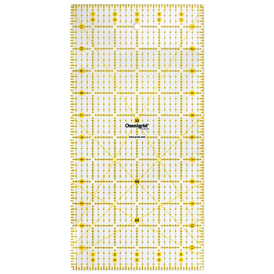 Omnigrid-Lineal mit gelb/schwarzem Rasterdruck in inch