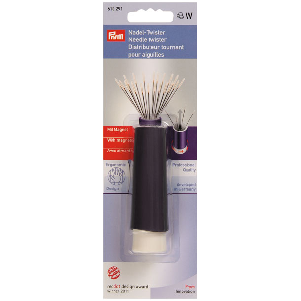 Der praktische Nadel-Twister verwahrt im inneren Nähnadeln und gibt sie per Drehbewegung wieder frei. Der Magnet im inneren sorgt dafür, das Nadeln sicher halten.