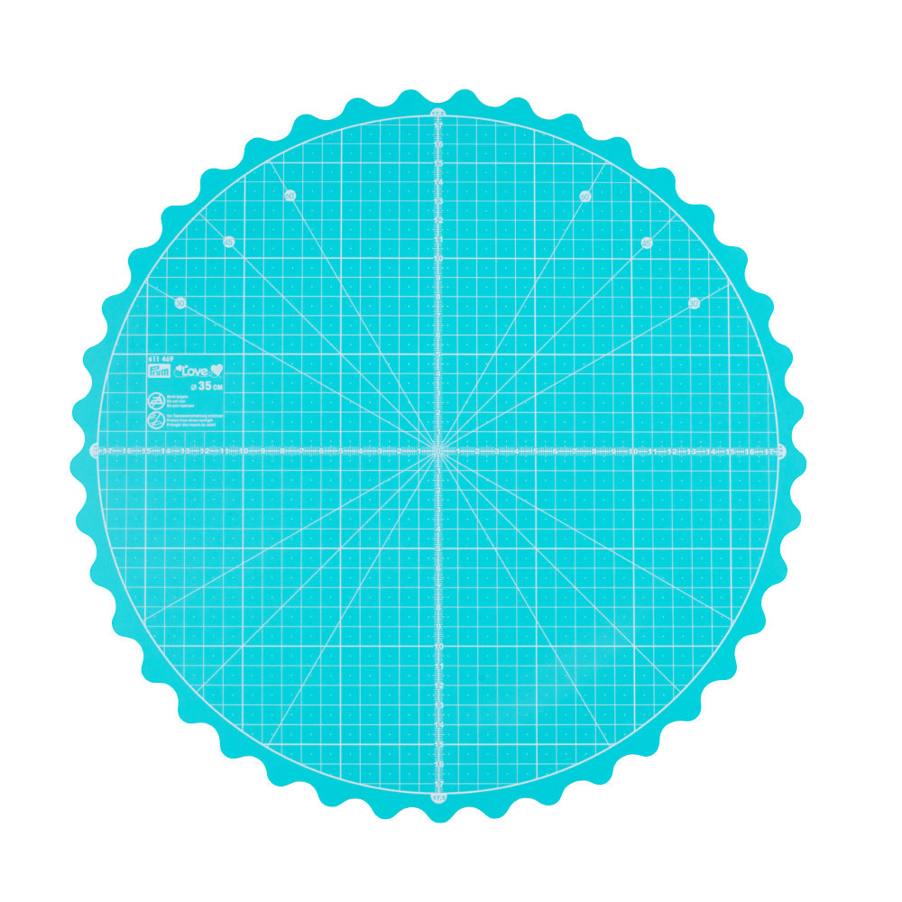 Schnelleres Zuschneiden speziell bei kleineren Teilen. Mit Aufdruck in cm-Skala. Mit griffigem Rand zu sicheren Drehen der Matte. Durchmesser: 35 cm Farbe: mint, weiß
