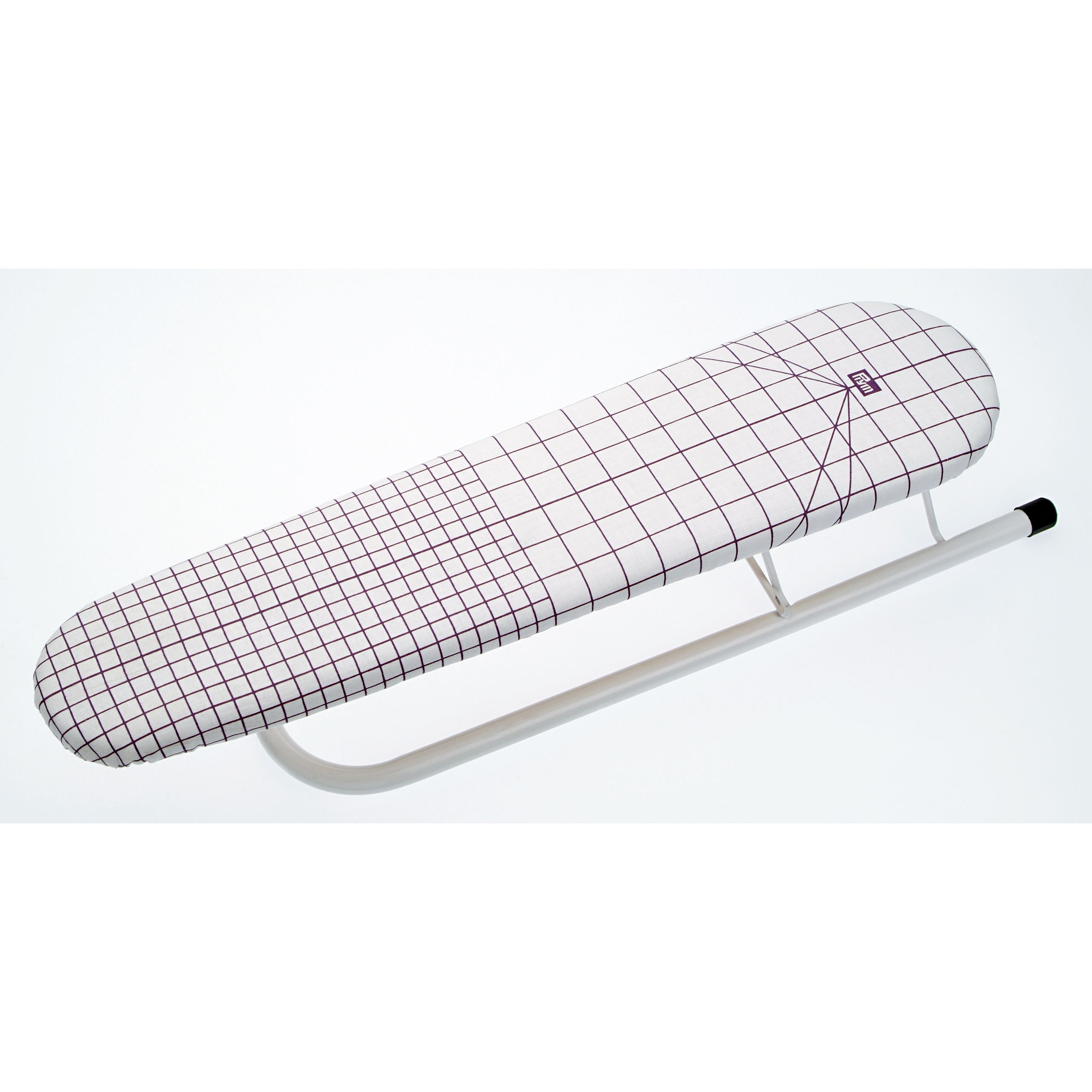 Arretierbares Bügelbrett speziell für Ärmel. Mit beidseitig verwendbarem, dampfdurchlässigem Bezug. Wahlweise hitzereflektierende oder gerasterte Oberfläche. Höhe arretierbar. Abmessungen: 52 x 12,5 cm