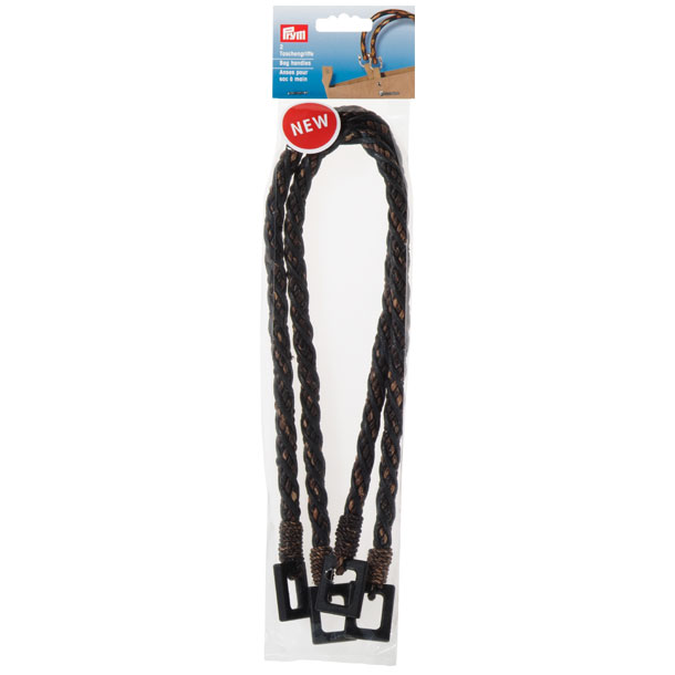 Taschengriffe aus geflochtenen Abacafaser mit Baumwollkordel-Verstärkung und Holzaufhänger. 62 cm. Farbe: dunkelbraun.