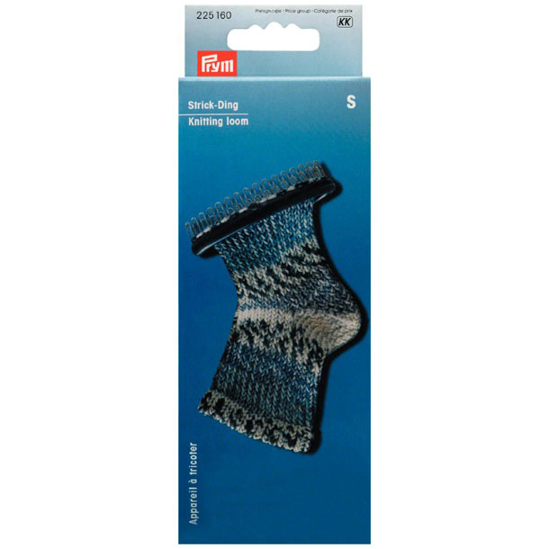 Strick-Ding in der Ausführung Small aus Kunststoff/Metall zur Erstellung von Socken, Stulpen und Pulswärmern. Mit Nadel und Anleitung. Farbe: Pflaumenblau/Silberfarbig